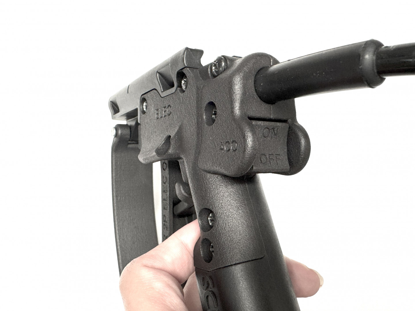 - Ergonomická rukojeť spouště zajišťuje pohodlnou polohu ruky při tryskání